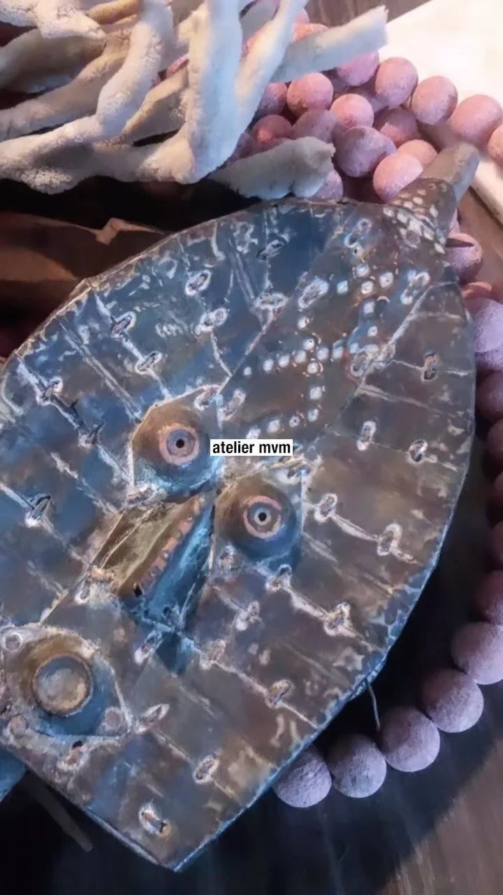 "Photographer and creative director Matthias Vriens has returned to his earliest passion—decorative arts—with the launch of Atelier MVM. The new studio encompasses a kaleidoscopic range of Vriens’ designs for furnishings, lighting, and objets de vertu. The entire collection is informed by a sensibility grounded in the designer’s lifelong obsession with antiquities, naturalia, and vintage textiles of far-flung pedigree, all of which he recombines and recontextualizes to create modern objects of wonder. African masks, coral, bronze, trade beads, seashells, antique mirrors, Uzbek fabrics, Tuareg weavings—these are the elements of Atelier MVM’s alchemy."